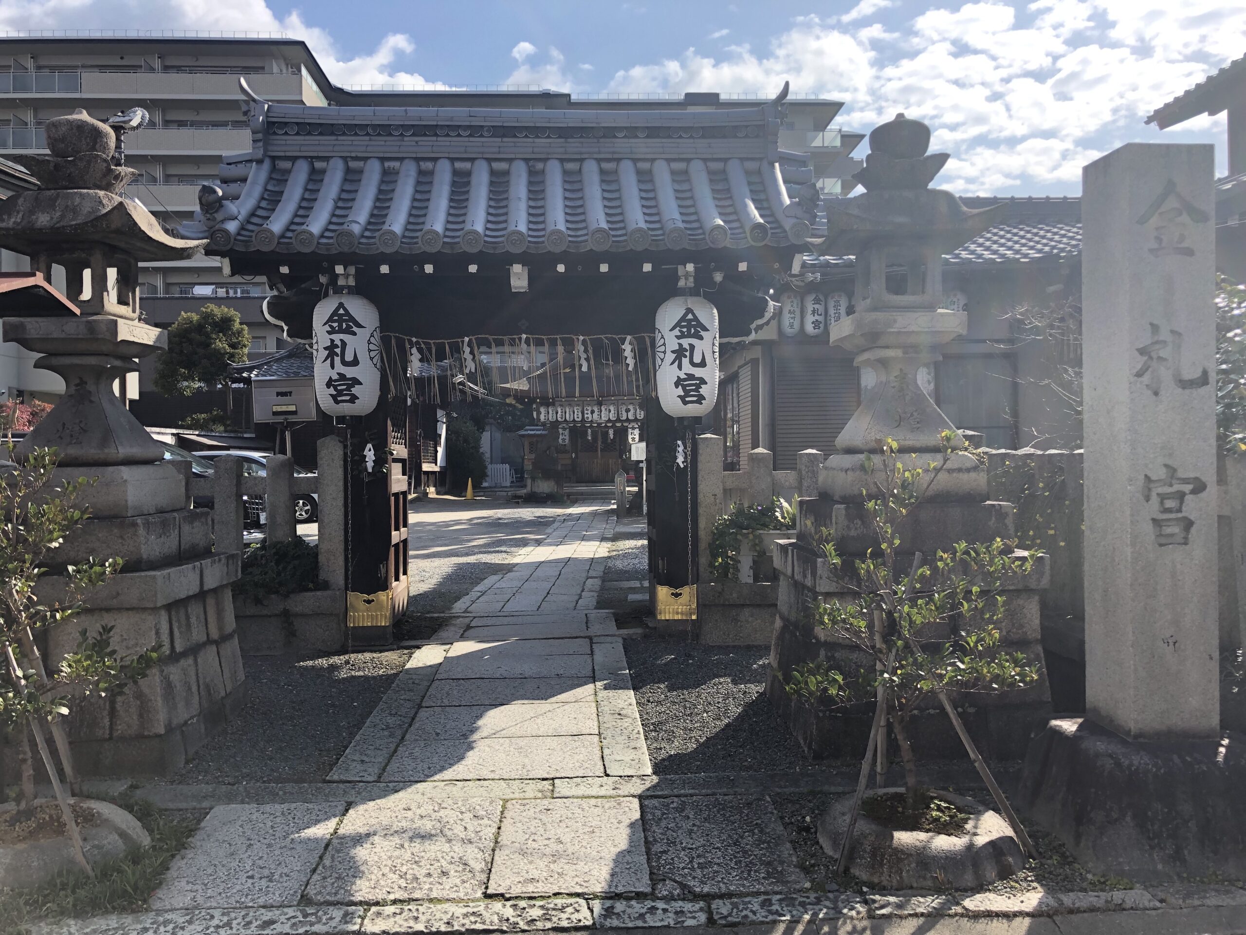 750年に建立されたと伝えられる金札宮は、建設中に空から金のお札が降ってきたことからその名を付けられたそうです。伏見で最も古い神社のうちの一つであるとともに、その存続には何代もの天皇の庇護があったという、皇室とも縁深い神社です。京都市指定天然記念物にも指定されているご神木のクロガネモチは樹齢1200年にも達し、「苦労がない金持ち」という語呂合わせから金運のご利益があるとも言われています。